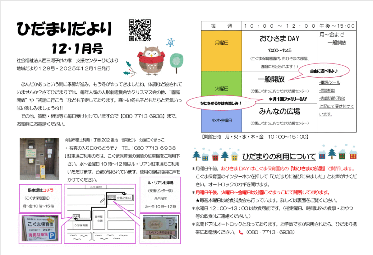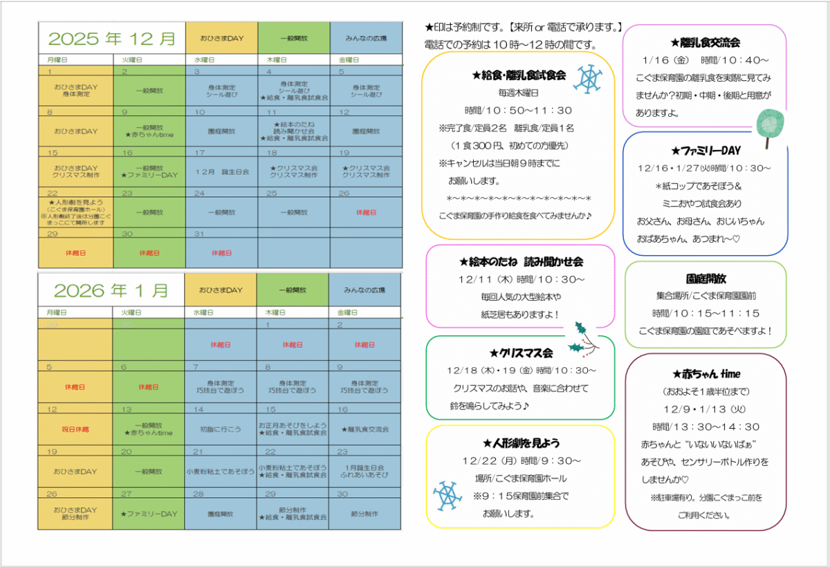 今月から予約は来所(10時~15時)、または電話受付(10時~12時)